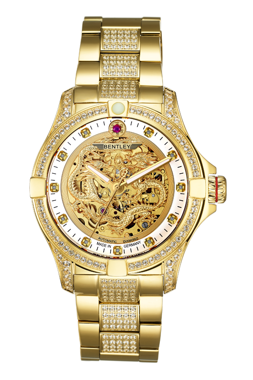 Dragon year watch with gold tone stainless steel case