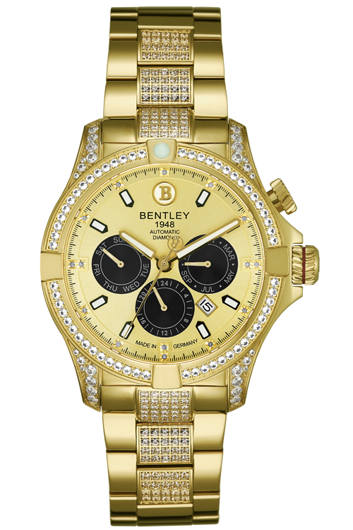 Gold-tone 43×51 mm, 258 white sapphires, gold dial w/ 15 diamonds, 9120 automatic