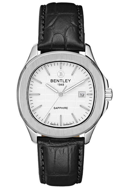 Stainless-steel 40×44.5 mm, Ø28.7 mm white dial, black calfskin, sapphire, 5.5 mm crown, GM10