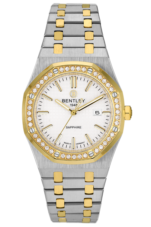 Gold two-tone SS 41.0×51.6 mm, Ø30 mm white dial, 40 white sapphires, sapphire crystal, 6 mm crown, GM12