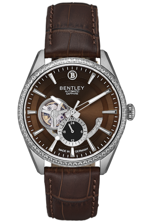 Stainless steel case with 64pcs white sapphire, Case Size: 41.0mm X 47.5mm, Dial Size: Ø 35.0mm, Brown dial, Brown calfskin leather strap, Sapphire crystal glass, Crown: Ø 6.5mm, Movement: YN74A/Automatic