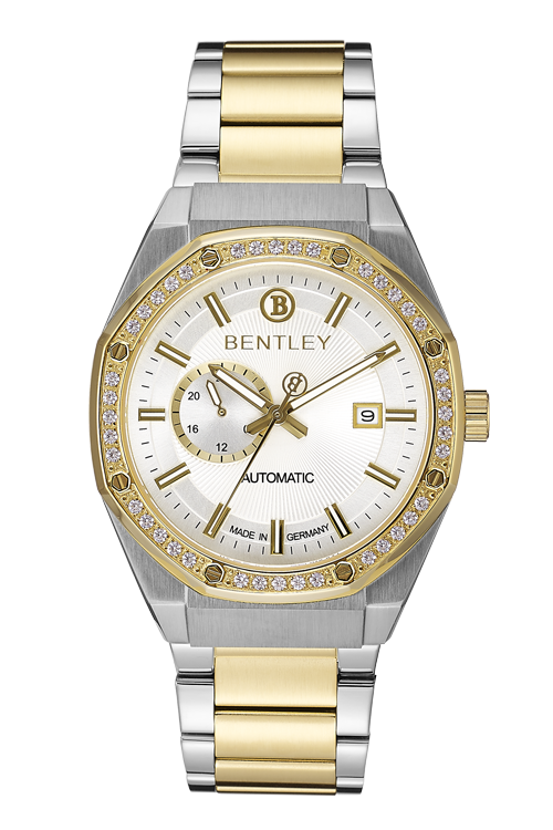 Gold two-tone SS 42×52 mm, Ø34 mm white dial, 40 white sapphires, sapphire crystal, 6 mm crown, 8217 movement