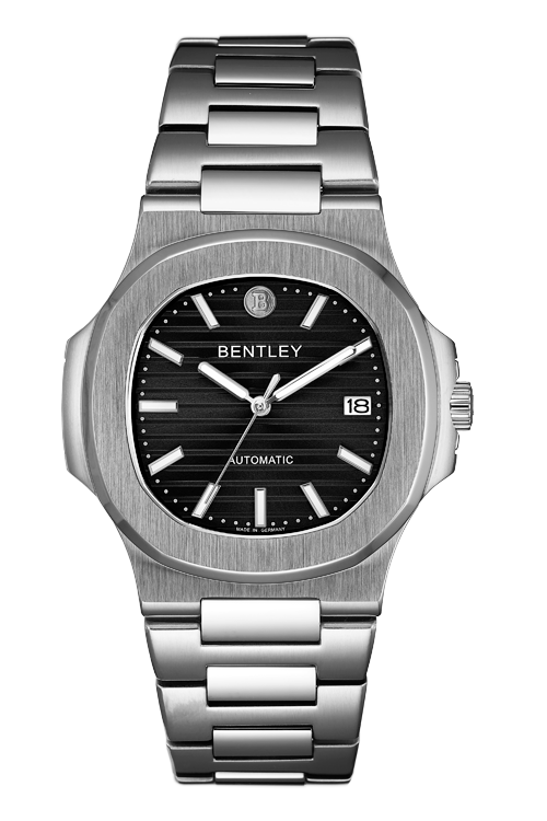 All-stainless steel 41×46.5 mm, Ø32 mm black dial, sapphire crystal, 6 mm crown, NH35 automatic