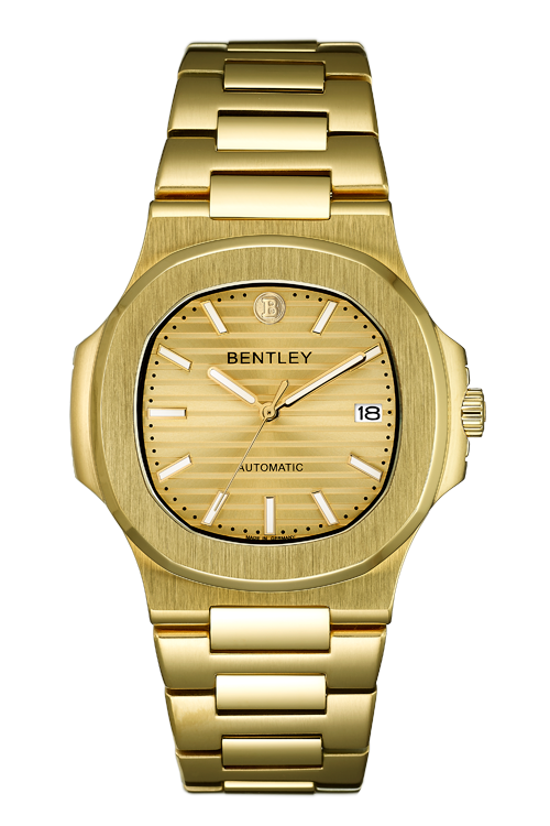 Gold-tone stainless steel 41×46.5 mm, Ø32 mm gold dial, sapphire crystal, 6 mm crown, NH35 automatic